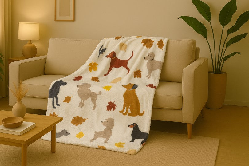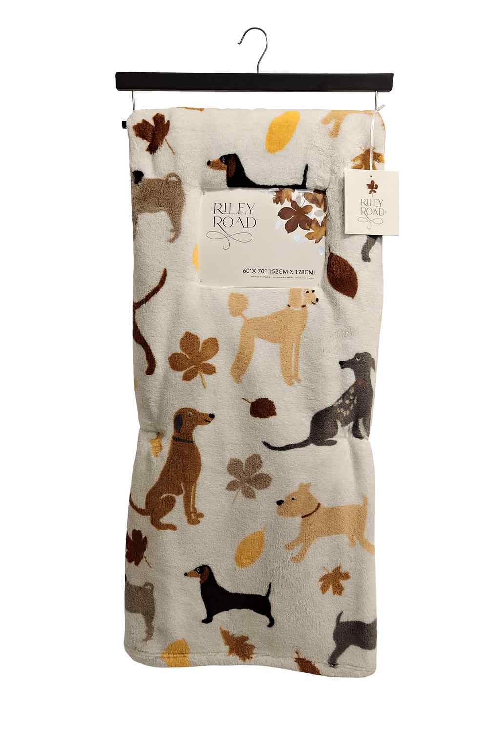 Soft Plush Oversized 60"x70" Fall Dogs Throw Blanket